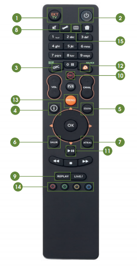 Con sólo pulsar esta tecla pasarás de controlar tu Deco HD Grabador a controlar tu TV y a la inversa. Luz verde: Modo TV. Luz naranja: Modo Decodificador